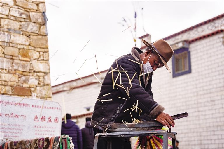 有人說,西藏的春天、夏天和秋天屬于格?;?,而冬天則屬于“羅薩梅朵”。對(duì)于桑木村的村民來說,“羅薩梅朵”不僅帶來收入,更是一種對(duì)傳統(tǒng)文化的堅(jiān)守和熱愛。每年,村民們將一整間房的金黃麥穗和青稞穗備好,隨后拿出來一一上色。房?jī)?nèi)的麥穗越來越少,村民的腰包越來越鼓,大街小巷里越來越多的人手里拿著色彩繽紛的“羅薩梅朵”,臉上洋溢著幸福的笑容。