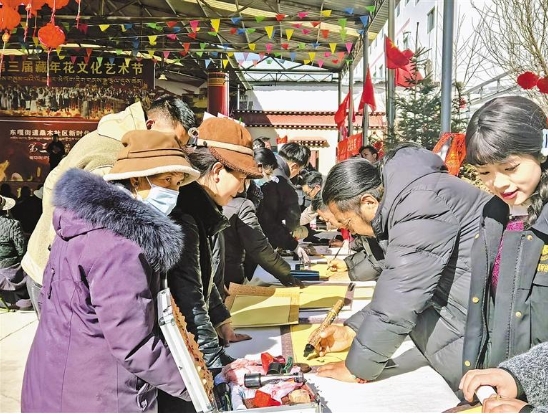 圖為活動中,拉薩書法家為社區(qū)居民書寫新年祝福語。記者 拉巴桑姆 攝