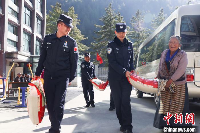 圖為 3月5日,亞東出入境邊防檢查站民警為駐地敬老院老人送去大米等生活用品。李錦輝 攝