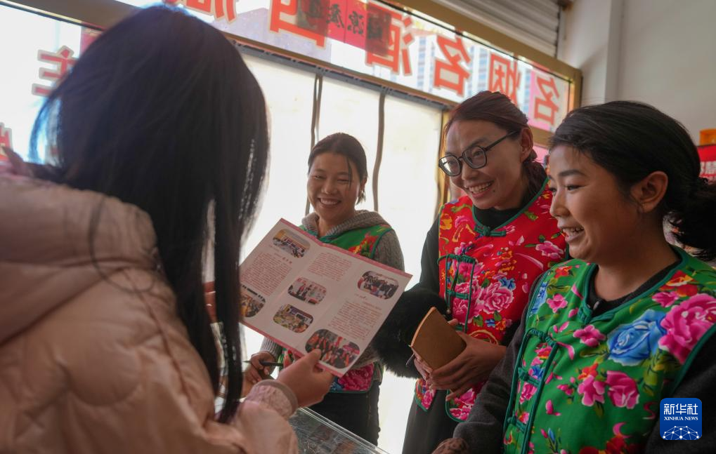 “花大姐”向轄區(qū)商戶宣傳議事會各種惠民事項(3月6日攝)。新華社記者 晉美多吉 攝
