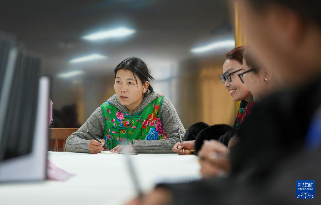 “花大姐”在商量解決社區(qū)群眾難事(3月6日攝)。新華社記者 晉美多吉 攝