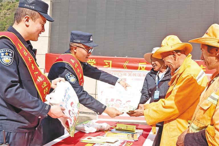 圖為民警向駐地群眾發(fā)放宣傳資料。通訊員 次旺卓瑪 攝