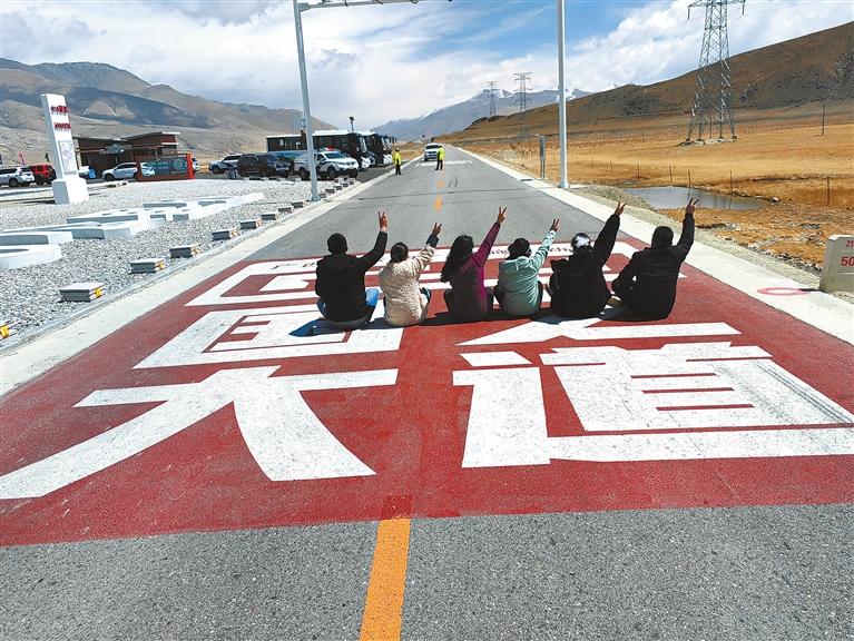 圖為游客在219國道5000公里打卡點拍照打卡。記者 旦增嘎瓦 扎西頓珠 攝