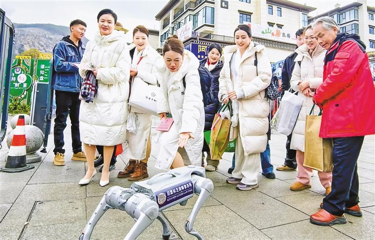 據(jù)了解,林芝市啟用銀灰色人工智能機(jī)器狗GO2作為移動(dòng)普法載體,搭載自主巡航、動(dòng)態(tài)避障等6項(xiàng)智能功能,在工布天街商圈開展全天候動(dòng)態(tài)巡游。機(jī)器狗背部印制民法典專題二維碼矩陣,同步連接“法治林芝”抖音號、“林芝司法為民”微信公眾號、林芝掌上12348平臺(tái)等4個(gè)線上端口,實(shí)現(xiàn)群眾學(xué)法“碼上達(dá)”,迅速觸及案例解析、法律問答、維權(quán)指引等9類服務(wù)模塊。