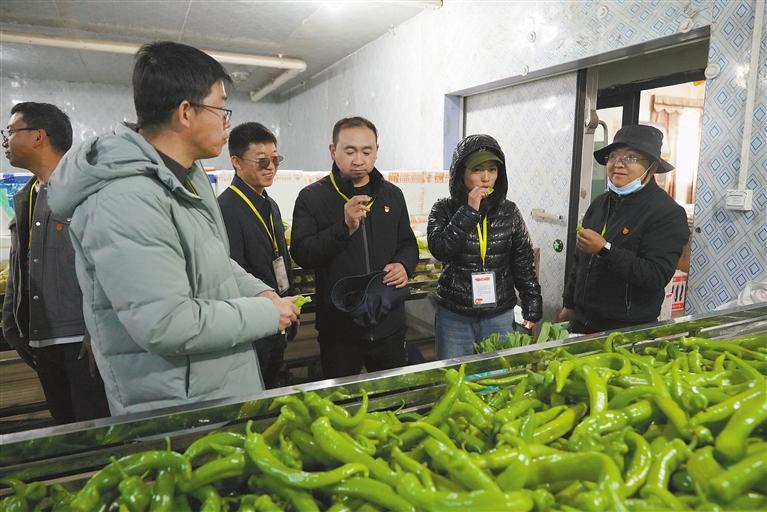 學(xué)員們?cè)诼∽涌h綠健蔬菜就業(yè)利民科技有限公司了解生產(chǎn)銷(xiāo)售情況。