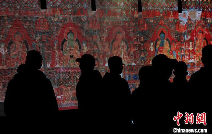 5月18日是第49個(gè)國際博物館日,今年的主題是“快速變化社會(huì)中的博物館未來”,西藏博物館迎來參觀熱潮。圖為觀眾在西藏博物館內(nèi)欣賞阿里古格經(jīng)典壁畫數(shù)字化成果展。中新社記者 李林 攝
