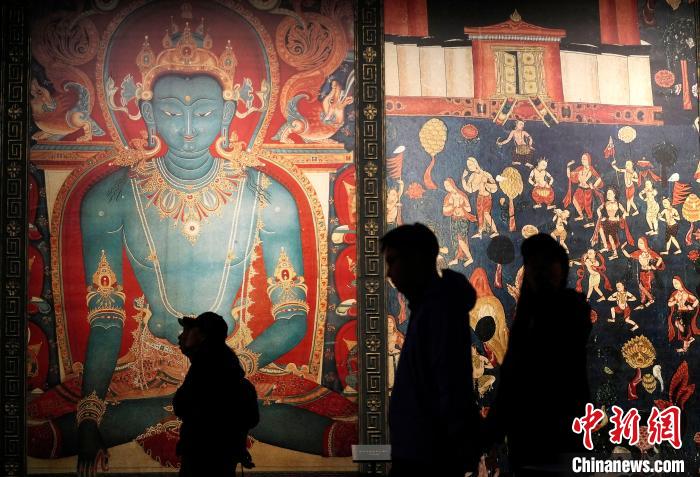 5月18日是第49個(gè)國際博物館日,今年的主題是“快速變化社會(huì)中的博物館未來”,西藏博物館迎來參觀熱潮。圖為觀眾正在欣賞展陳的八思巴肖像唐卡。中新社記者 李林 攝