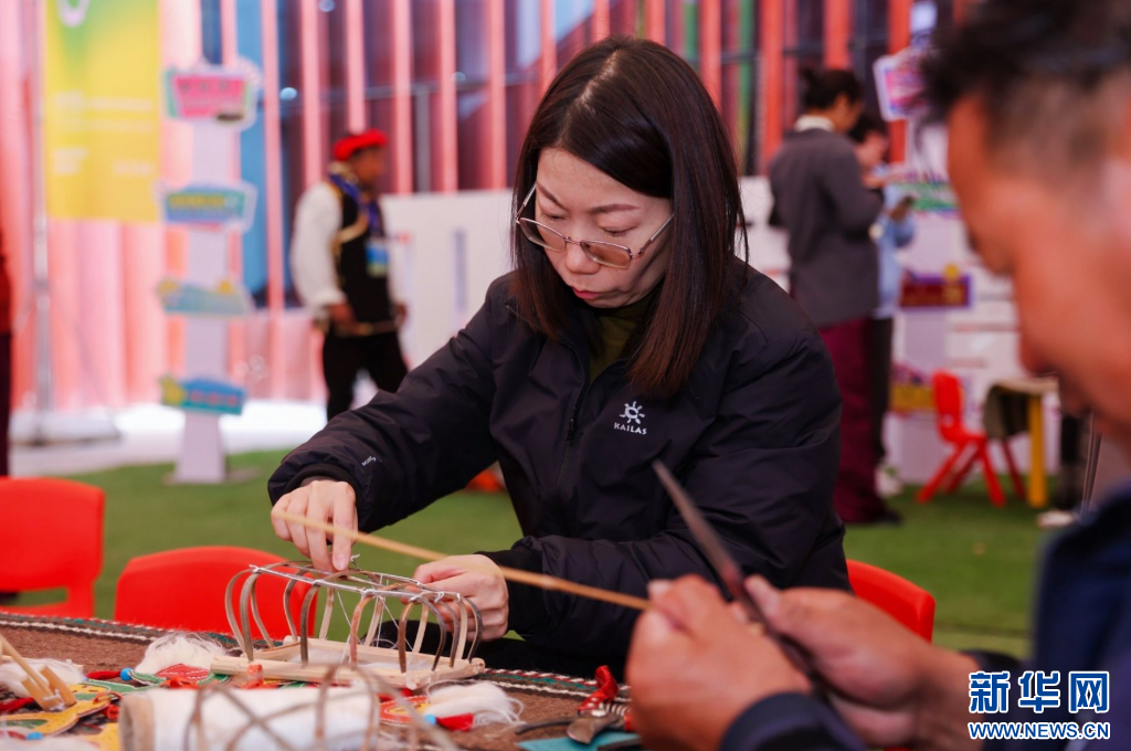 5月18日,參觀者體驗(yàn)牦牛皮產(chǎn)品制作。(受訪者供圖)