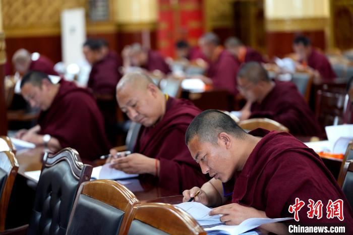 圖為5月30日,中國藏語系高級佛學(xué)院2025級高級學(xué)銜班招生考試在西藏拉薩考點舉行通識知識考試。中新社記者 李林 攝