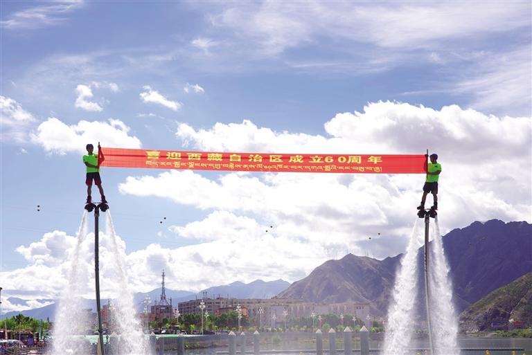 隨后,自治區(qū)體育局黨組副書記、局長尼瑪次仁宣布活動正式開始,隨著比賽開始,現(xiàn)場瞬間沸騰,鼓點聲、吶喊聲、槳葉擊水聲交織成激昂樂章,水面上的龍舟隊伍如離弦之箭破浪疾馳。選手們身著統(tǒng)一隊服,在舵手鏗鏘有力的指揮下,整齊劃一地揮槳破水,動作剛勁有力,節(jié)奏緊湊有序。