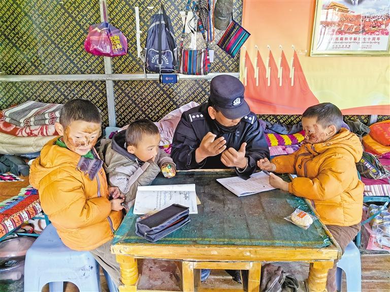 圖為壩鄉(xiāng)派出所民警正在輔導孩子們學習。記者 彭琦 攝