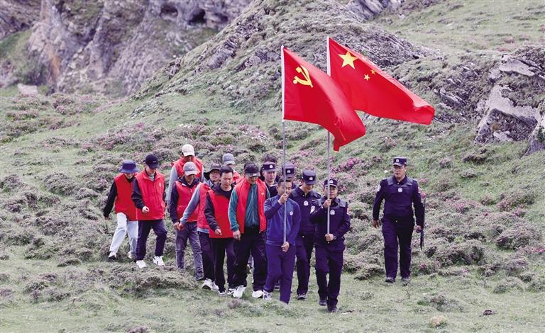7月1日清晨,當(dāng)?shù)谝豢|陽光照亮蜿蜒山脊,一支由日喀則邊境管理支隊帕里邊境派出所聯(lián)合駐地黨委和政府、社區(qū)居委會、消防站等共建單位組成的聯(lián)合巡邏隊伍整裝出發(fā),開展“賡續(xù)紅色血脈·共筑守邊長城”主題巡邊活動。