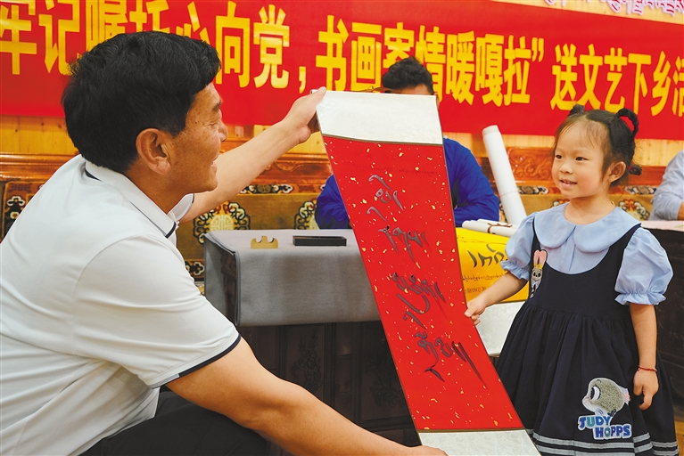 近日,林芝市文聯(lián)在巴宜區(qū)林芝鎮(zhèn)嘎拉村開(kāi)展“牢記囑托心向黨 書(shū)畫(huà)寄情暖嘎拉”送文藝下鄉(xiāng)活動(dòng)。書(shū)法家們揮毫潑墨,將飽含著美好祝福與深厚情誼的書(shū)法作品贈(zèng)送給村民;美術(shù)家和攝影家則帶來(lái)記錄嘎啦村發(fā)展變遷、村民們幸福生活的作品。