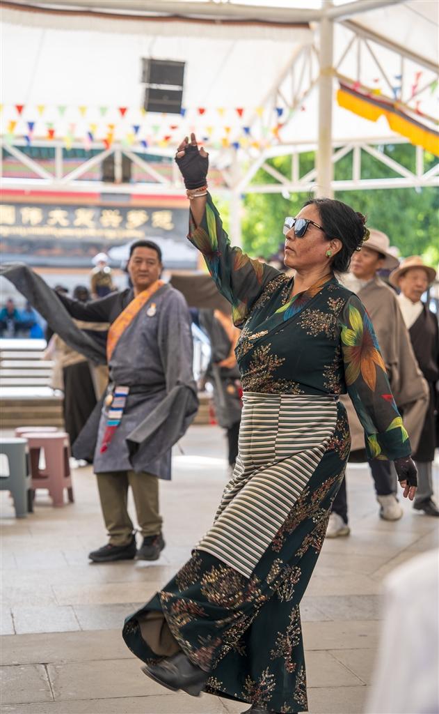 踢踏聲中,老人們甩掉了腰酸腿痛,年輕人驅(qū)散了工作疲憊。鮮艷的藏裝旋出歡樂弧線,嘹亮的歌謠唱出心底喜悅。藏裝翻飛如彩蝶,歌聲清亮繞湖岸,每一個旋轉(zhuǎn)都盛滿笑意。