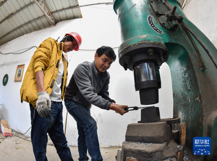 為了讓古老技藝煥發(fā)新活力,寸昆杰在保持傳統(tǒng)手工雕刻的基礎(chǔ)上,引進(jìn)空氣錘、液壓機(jī)、淬火機(jī)等現(xiàn)代工具,不斷提升洛隆藏刀的制作效率。“藏刀制作,不僅僅是一份工作,更是一份傳承責(zé)任。”寸昆杰說。