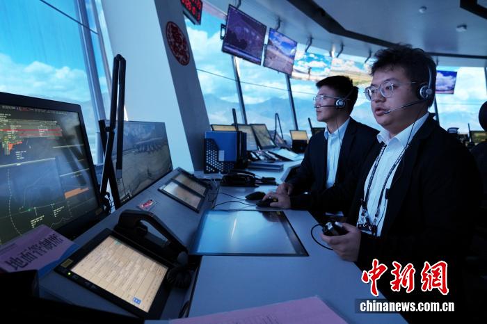 2025年7月22日,塔臺管制室?guī)О嘀魅蔚┰?左,藏族)與見習(xí)管制員管羽揚(右)在拉薩貢嘎國際機(jī)場塔臺指揮航班進(jìn)離場。據(jù)悉2025年是西藏自治區(qū)成立60周年,也是西藏民航通航60周年。中新社記者 張祥毅 攝