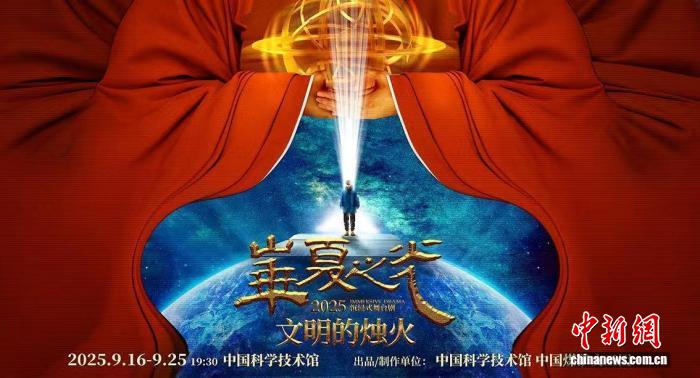 中國(guó)科技館9月14日發(fā)布消息說,值此首個(gè)全國(guó)科普月期間,該館將于9月16日至25日(每晚19:30-20:45)連演10場(chǎng)沉浸式舞臺(tái)劇《華夏之光-文明的燭火》,公眾可于9月15日中午12:00起,通過其官方網(wǎng)絡(luò)平臺(tái)預(yù)約觀看。