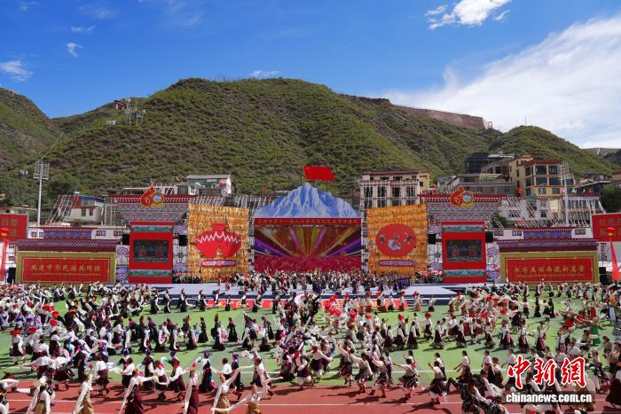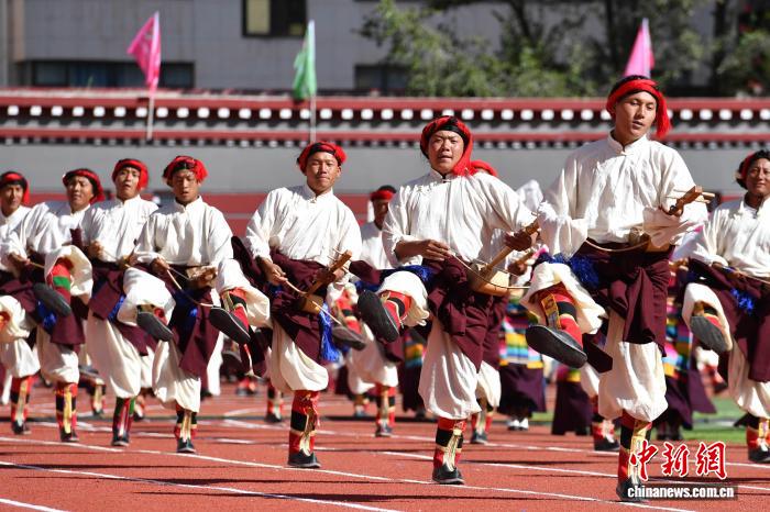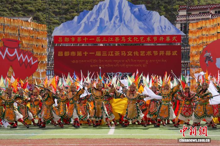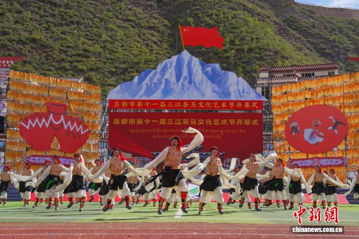 9月15日,西藏自治區(qū)昌都市第十一屆三江茶馬文化藝術(shù)節(jié)在津昌體育文化中心啟幕。開(kāi)幕式以“紅色昌都 三江潮涌”為主題,由中共昌都市委員會(huì)、昌都市人民政府主辦,同步融入慶祝西藏自治區(qū)成立60周年元素,盡顯昌都文化魅力與發(fā)展活力。開(kāi)幕式現(xiàn)場(chǎng),來(lái)自昌都11縣(區(qū))、身著絢麗節(jié)日盛裝的游行方陣依次登場(chǎng),各方陣通過(guò)特色展演展現(xiàn)地域文化風(fēng)采。隨后,正式文藝表演拉開(kāi)帷幕,表演共分為“三江奔騰·紅色昌都”“金沙江·紅色起點(diǎn)”“怒江·指尖上的傳承”“瀾滄江·高原上的燈塔”“同心筑夢(mèng)向未來(lái)”五個(gè)篇章。康巴文化藝術(shù)團(tuán)、天津青年友好使者藝術(shù)團(tuán)、全國(guó)廣場(chǎng)舞愛(ài)好者及11縣(區(qū))藝術(shù)團(tuán)等千余名表演者同臺(tái)獻(xiàn)藝。圖為開(kāi)幕式上的文藝演出。貢確 攝