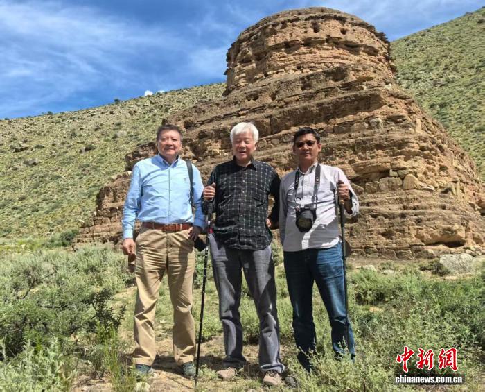 圖為李永憲(中)與霍巍(左)、夏格旺堆(右)2025年在朗縣列山吐蕃墓地調(diào)查中。受訪者供圖