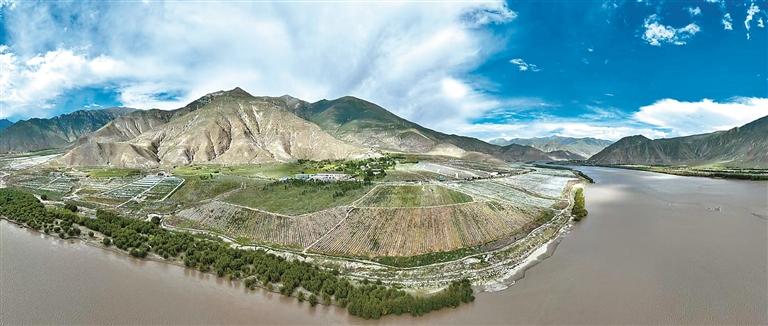 圖為桑日縣帕竹葡萄酒莊種植基地(無人機拍攝)。通訊員 嘉措 攝