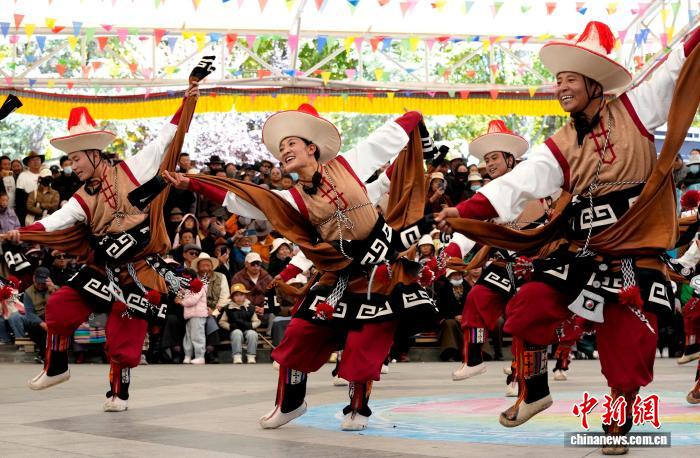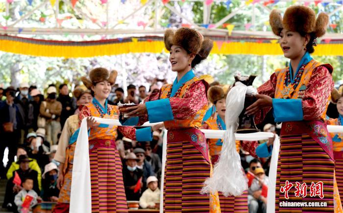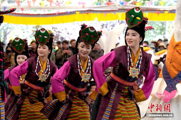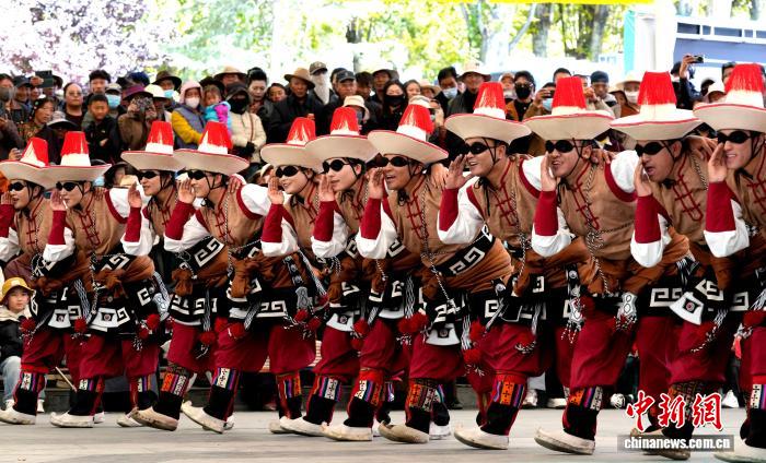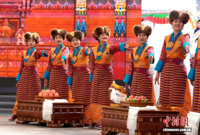 10月19日,“格?;ū崩_市第六屆縣(區(qū))藝術(shù)團(tuán)文藝調(diào)演頒獎(jiǎng)活動(dòng)在布達(dá)拉宮腳下的宗角祿康公園舉行。現(xiàn)場(chǎng),拉薩市各縣(區(qū))藝術(shù)團(tuán)帶來(lái)精彩節(jié)目。圖為文藝調(diào)演頒獎(jiǎng)活動(dòng)上的文藝表演。中新社記者 李林 攝