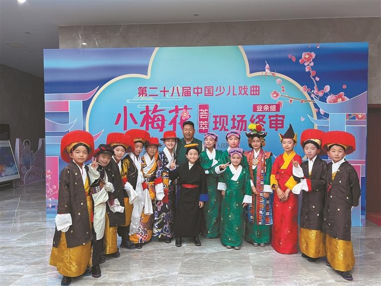 2021年,他帶領(lǐng)少兒藏戲班的孩子們遠(yuǎn)赴北京,參加第二十五屆中國少兒戲曲小梅花比賽?!叭ケ本┲?,孩子們特別興奮,也有點(diǎn)緊張?!甭迳T餍χf,“我就跟他們說,咱們不是去比賽的,是去展示藏戲的美,把咱們藏族小朋友的風(fēng)采展現(xiàn)出來就好。”