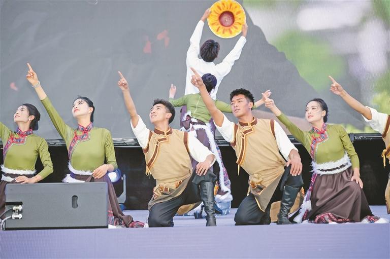 圖為松贊藝術(shù)團(tuán)帶來(lái)的舞蹈節(jié)目《向陽(yáng)花開(kāi)》。