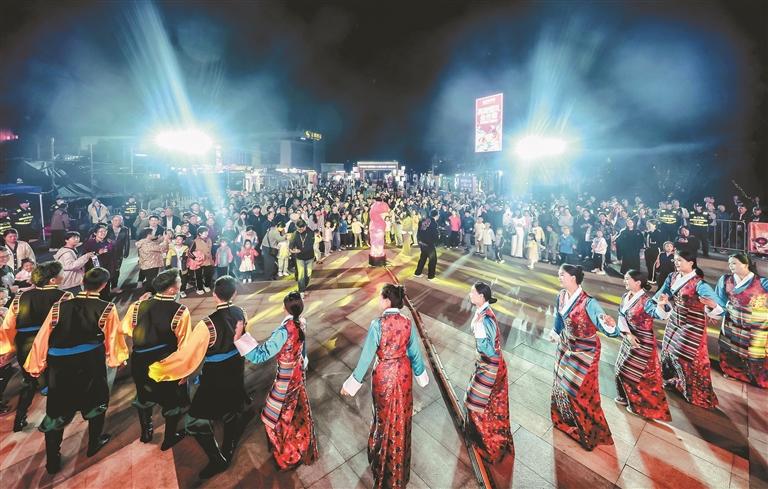 文化展演區(qū)內(nèi),伴隨著歡快的民族音樂(lè)響起,墨竹工卡縣松贊藝術(shù)團(tuán)演職人員與南京市民一起跳起了歡快的鍋莊。歌舞表演的互動(dòng)環(huán)節(jié),觀眾上臺(tái)制作糌粑,品嘗酥油茶,一系列豐富有趣的互動(dòng)環(huán)節(jié),不斷加深著各民族之間的交往交流交融,也展現(xiàn)了墨竹工卡縣各族群眾熱愛(ài)家鄉(xiāng)、團(tuán)結(jié)友善、不斷進(jìn)取的良好精神風(fēng)貌。