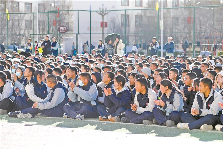 學(xué)生們?cè)诂F(xiàn)場(chǎng)認(rèn)真聆聽(tīng)并熱烈鼓掌。記者 貢秋曲措 攝