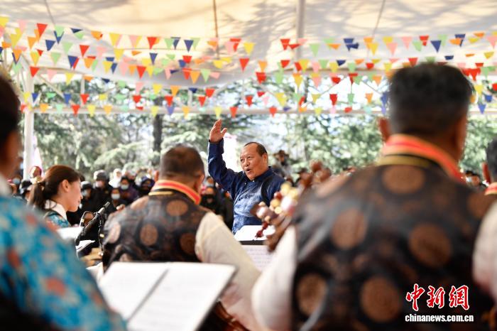圖為群眾音樂(lè)會(huì),民樂(lè)合奏《夏爾巴的歌聲》精彩上演。中新社記者 貢嘎來(lái)松 攝