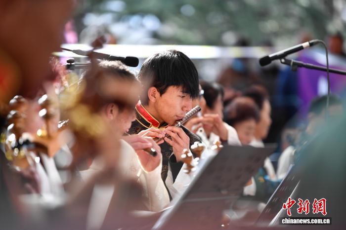 圖為群眾音樂(lè)會(huì),民樂(lè)合奏《我的家鄉(xiāng)好》精彩上演。中新社記者 貢嘎來(lái)松 攝