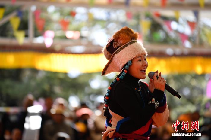 圖為群眾音樂(lè)會(huì)獨(dú)唱《祝福祖國(guó)》。中新社記者 貢嘎來(lái)松 攝