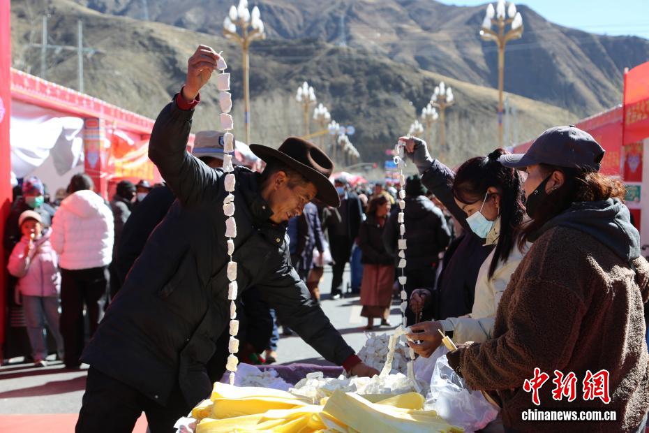 2月2日,西藏自治區(qū)山南市瓊結縣2026年“幸福瓊結·優(yōu)享年貨”促消費暨展銷活動在朗熱大道啟幕,為春節(jié)、藏歷新年預熱添彩。本次活動由瓊結縣投入200萬元人民幣打造,為期7天,吸引103家商戶入駐,其中73家為本地商戶,帶來150余種特色商品,高原農產、藏式手工藝品、傳統(tǒng)年貨齊聚現場,盡顯藏地年味?;顒油瞥鲛r業(yè)銀行掌銀立減優(yōu)惠,民眾無需領券即可享實惠,現場還設置咨詢臺與宣傳點,切實保障消費安全。圖為民眾在選購奶渣。