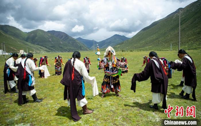 草原上正在展示直孔普堆巴宣舞?!⒅铱?攝