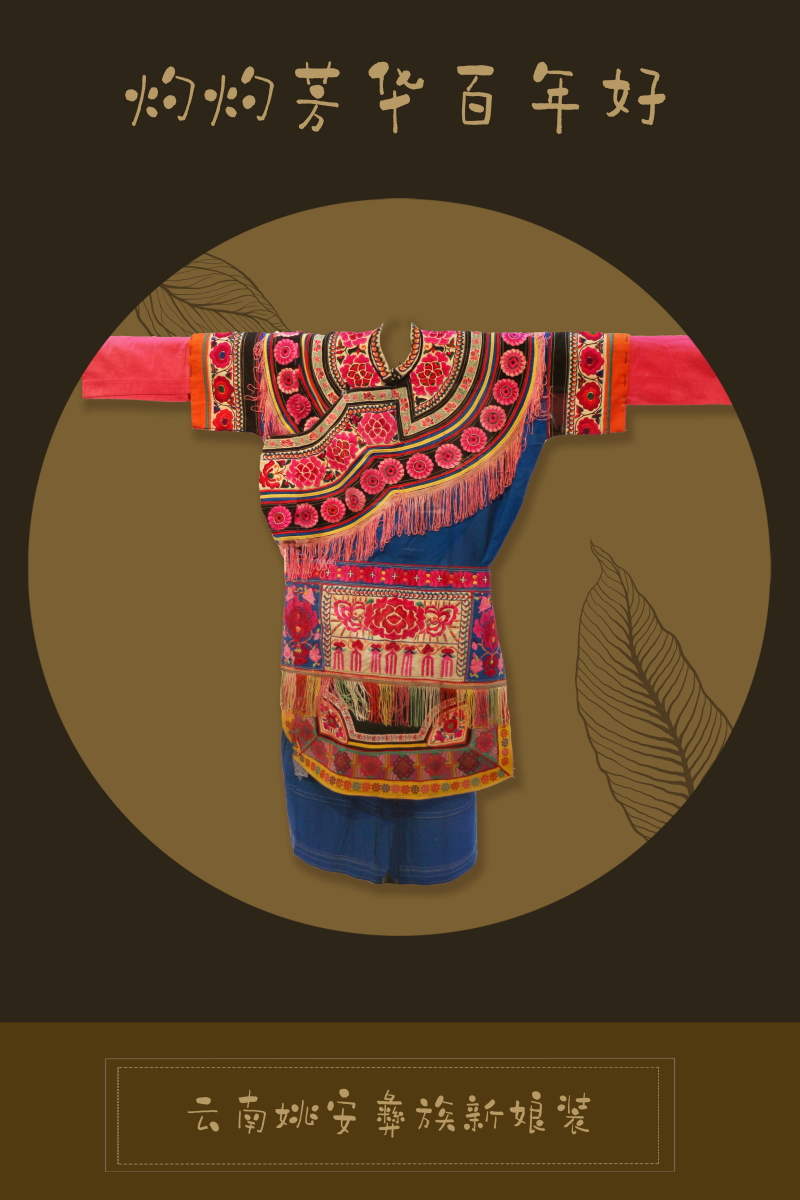 云南省美麗的山川、多樣的民族文化,給予這里的人們無限的想象力和豐富的創(chuàng)作靈感,各民族把自己對歷史過往的記憶、對大自然的熱愛、對美好事物的感受、對社會道德的崇尚等等,用服飾文化這一特殊語言表現(xiàn)出來。其中,民族婚禮服飾種類繁多,文化底蘊(yùn)深厚,每一套服裝都反映出云南少數(shù)民族質(zhì)樸的審美情趣與深厚的生活哲學(xué)。