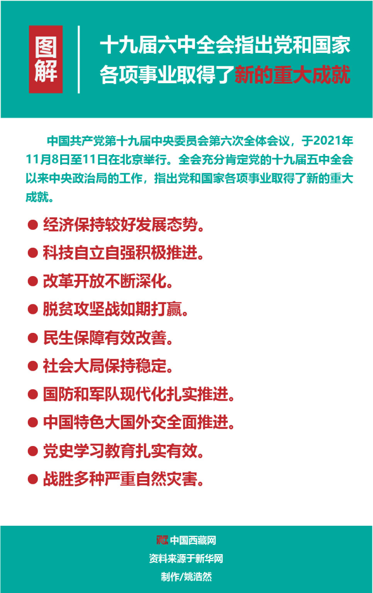 圖解丨十九屆六中全會指出黨和國家各項事業(yè)取得了新的重大成就