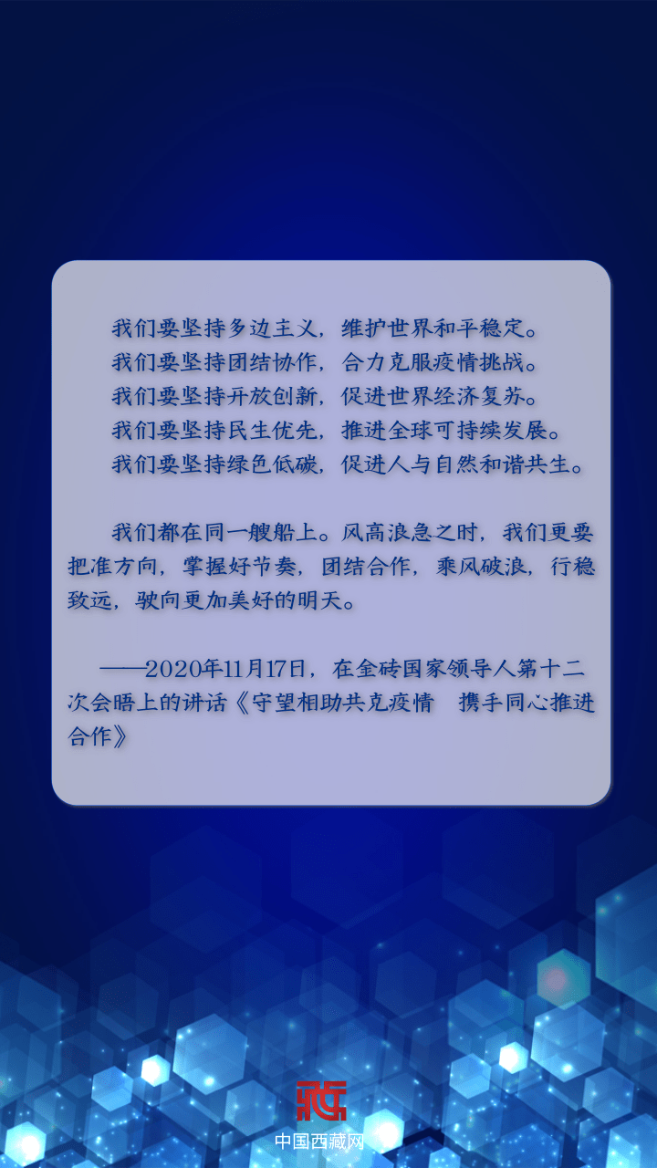 讓我們攜起手來,堅持和平、發(fā)展、合作、共贏,共同解決當前世界經(jīng)濟以及國際貿易和投資面臨的問題,一起走向更加美好的未來! [詳細]