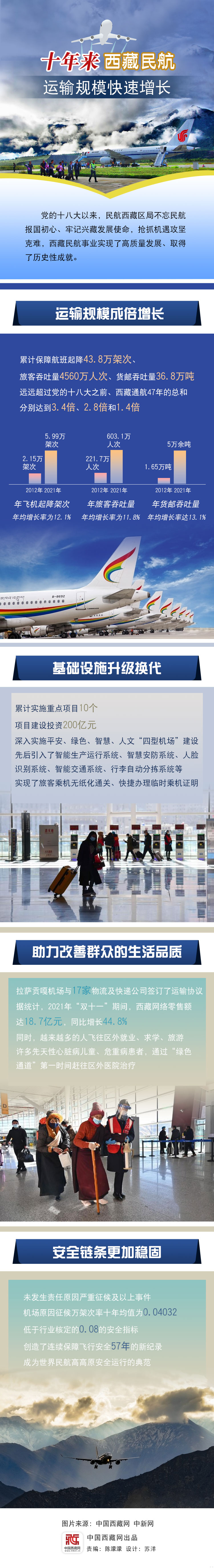 一圖了解|十年來西藏民航運(yùn)輸規(guī)??焖僭鲩L
