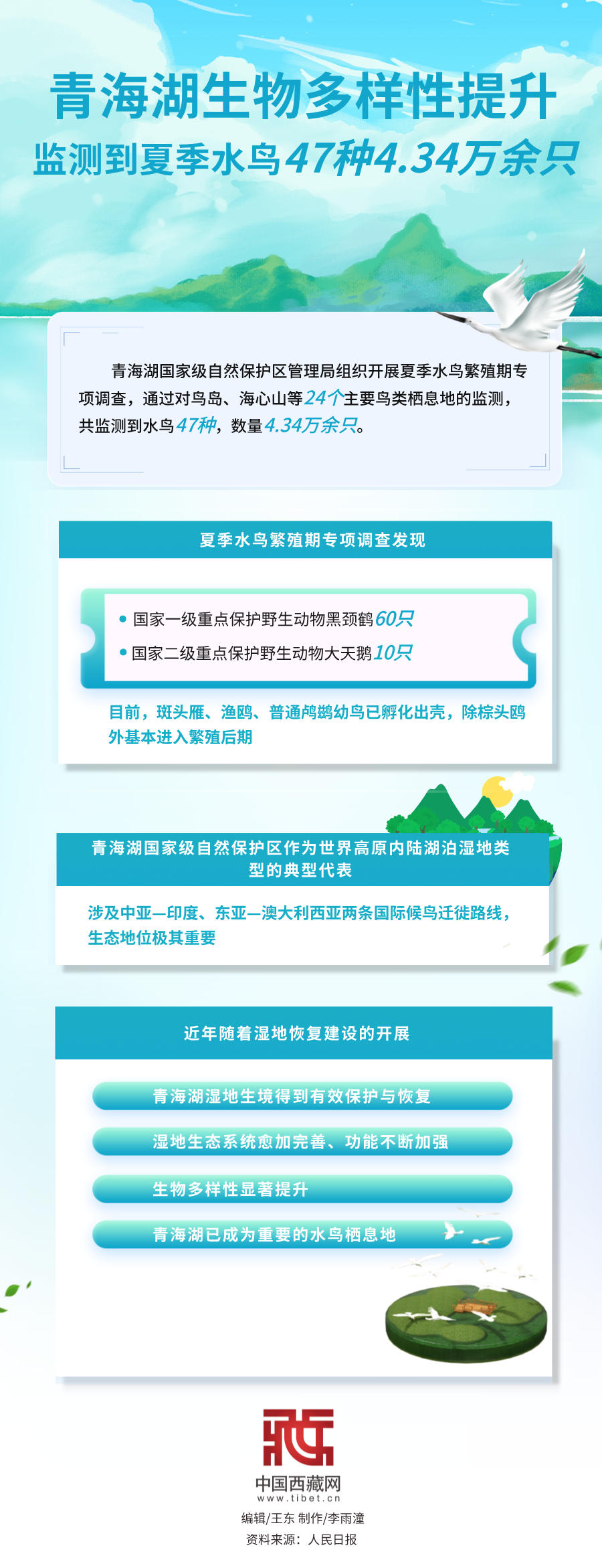 海報(bào)|青海湖生物多樣性提升 監(jiān)測(cè)到夏季水鳥47種4.34萬余只