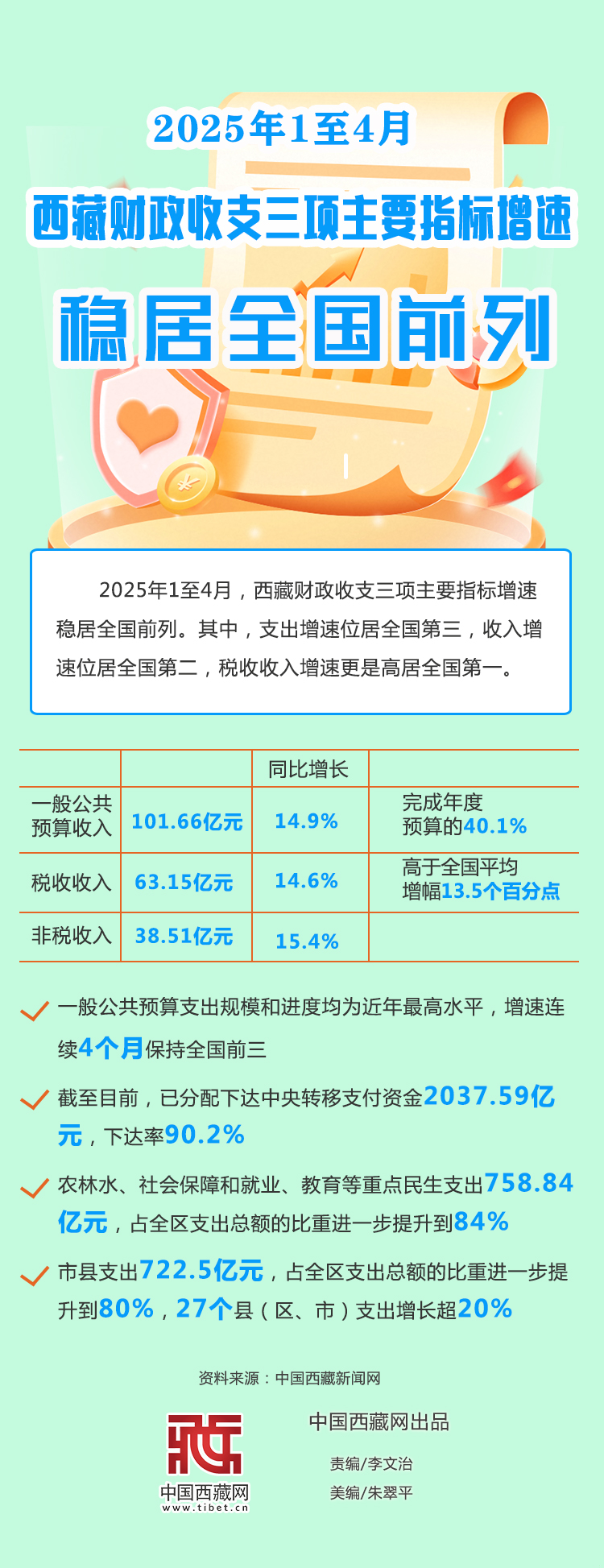 海報(bào)|2025年1至4月西藏財(cái)政收支三項(xiàng)主要指標(biāo)增速穩(wěn)居全國(guó)前列