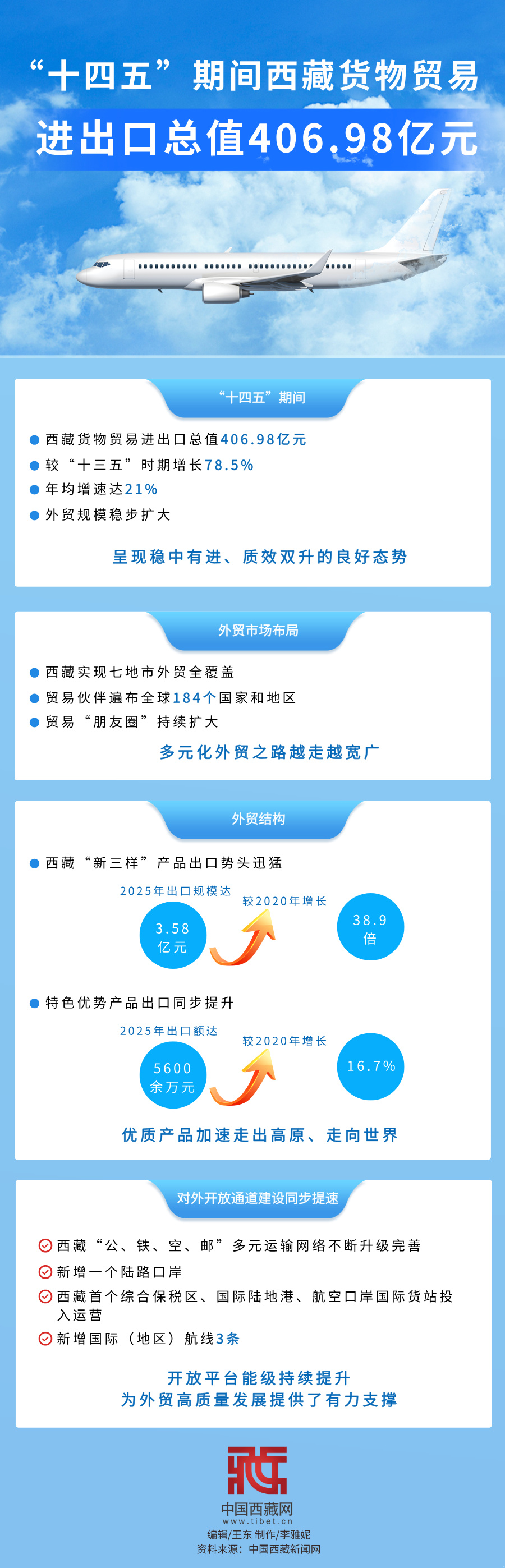 海報|“十四五”期間西藏貨物貿(mào)易進出口總值406.98億元