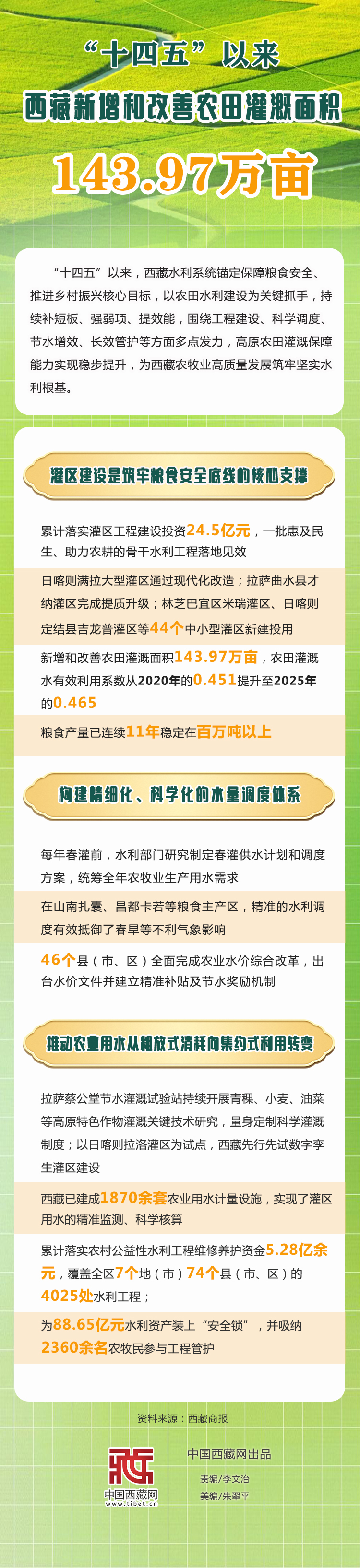 圖解|“十四五”以來 西藏新增和改善農(nóng)田灌溉面積143.97萬畝
