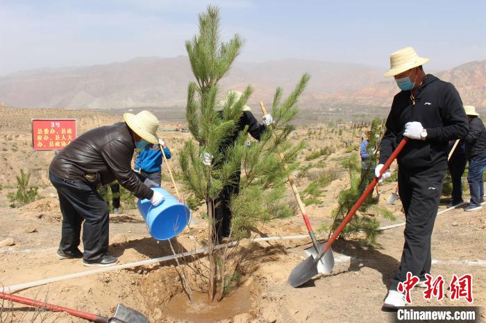圖為黃南州同仁縣干部職工植樹(shù)現(xiàn)場(chǎng)?!⊥士h委宣傳部 供圖