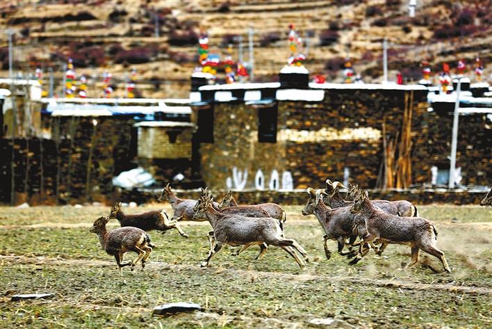 一小群巖羊正在山崖峭壁間不斷跳躍著,一群白唇鹿正在聚集休憩、喝水,野生動物的光臨,讓冬天里的瓊結瓊果河國家濕地公園顯得生機勃勃。 [詳細]