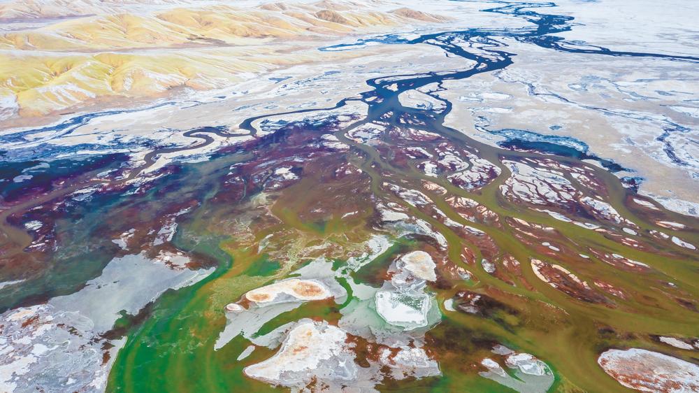 和遙遠(yuǎn)天幕上的星星一樣,星星海是宿落大地的星辰。站在地平線上,你絕看不到這片海的樣貌。只有從高空俯視,地作棋盤(pán)湖作子,大自然不經(jīng)意間涂抹的一抹抹蔚藍(lán),掉落在荒原空曠的色板上,閃爍著或深或淺的靈動(dòng)底色。