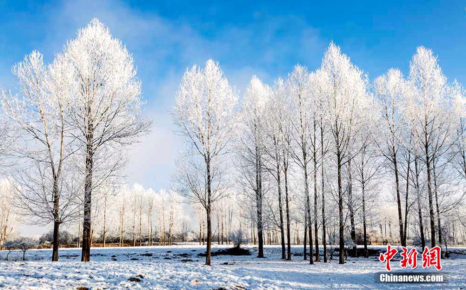12月21日清晨,祁連山生態(tài)公園核心地區(qū)門源浩門河南岸出現(xiàn)冬日霧淞景觀。上午9時(shí)許,浩門河邊的青年林云消霧散,晴空萬(wàn)里,碧水藍(lán)天,玉樹瓊花,美不勝收。
