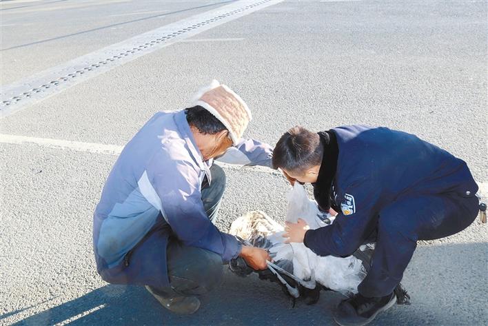 民警迅速到達現(xiàn)場了解得知:報案人普某路過年楚河大橋時發(fā)現(xiàn)一只飛行中的鳥撞到電線后落地,導(dǎo)致其右側(cè)翅膀受傷,無法正常飛行,遂報警求助。經(jīng)過仔細觀察,民警懷疑該鳥為國家一級保護動物——黑頂鶴,于是在上報指揮中心的同時,與桑珠孜區(qū)林業(yè)局取得聯(lián)系。
