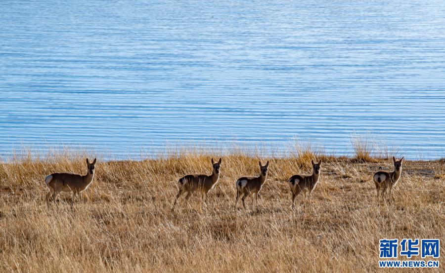 這是1月10日拍攝的羊卓雍錯(cuò)岸邊的藏原羚。新華社記者 孫非 攝