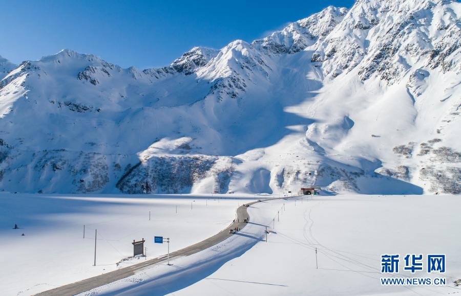 雪后的墨脫公路嘎隆拉隧道入口(2月8日攝,無人機照片)。新華社記者 孫非 攝