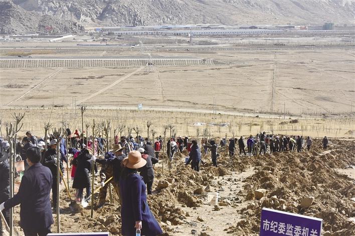 拉薩市林草局相關(guān)負(fù)責(zé)人介紹,上午10點,植樹隊伍早早就到達現(xiàn)場,在事先劃分好的植樹區(qū)域,大家態(tài)度積極、熱情高漲,興致勃勃地投入到植樹活動中。